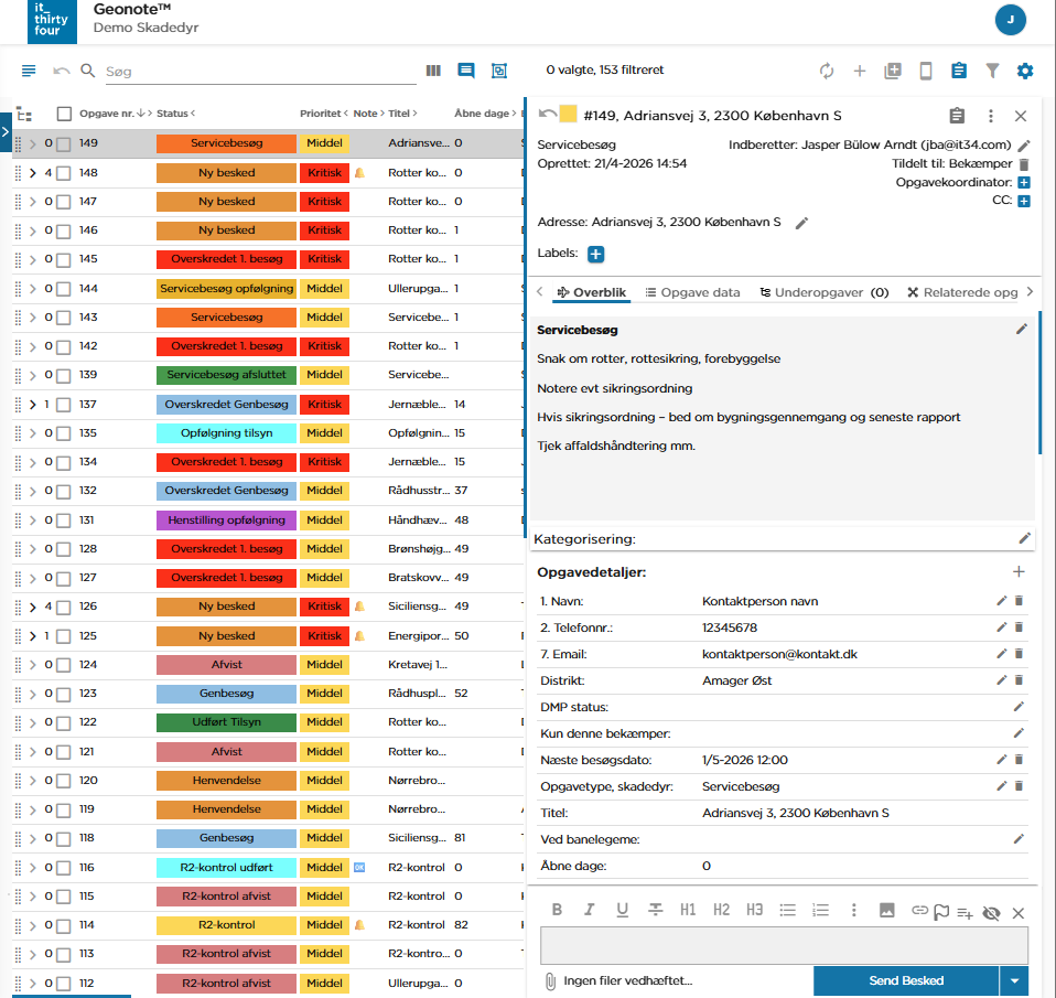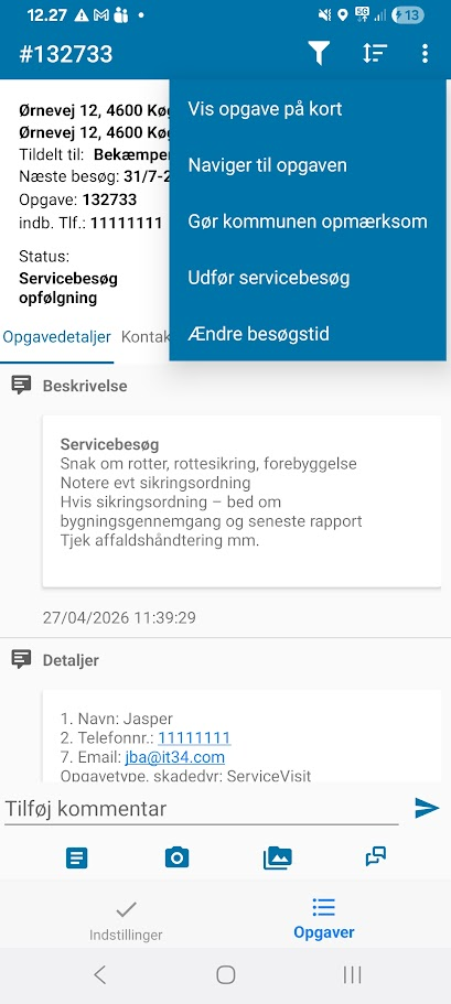 Servicebesøg er synlige i opgavekvittering på lige fod med bekæmpelsessager og tilsynspligtige ejendomme.