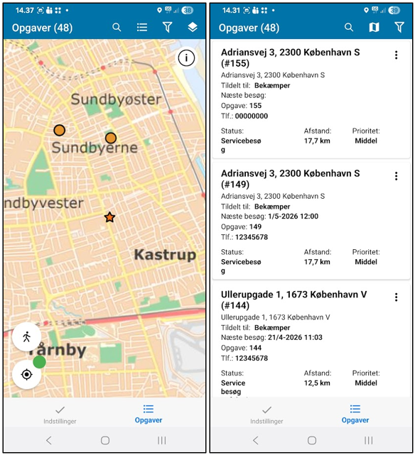 Med ovenstående filterkombination kan servicebesøg findes i opgavelisten og i kortet.