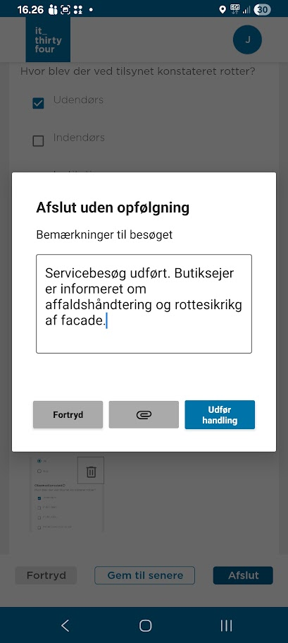Når besøget afsluttes udfyldes kommentarfeltet med bemærkninger.