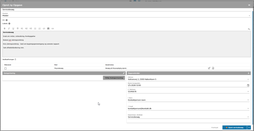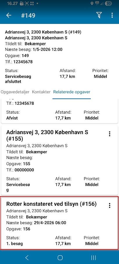 Og nu bliver der genereret en bekæmpelsessag på adressen. Denne kan findes under Relaterede opgaver