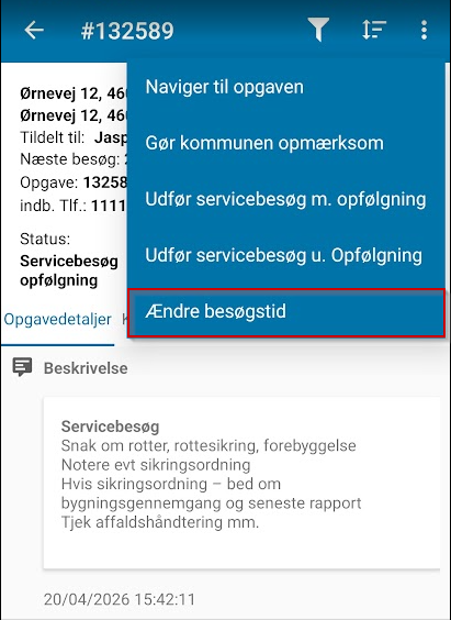 Hvis man derimod ønsker at udføre opfølgningen på et andet tidspunkt kan det planlægges med handlingen Ændre besøgstid.