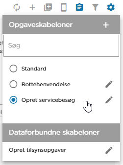 For at oprette et servicebesøg anvendes skabelonen Opret servicebesøg i GeoNote Opgavestyring.